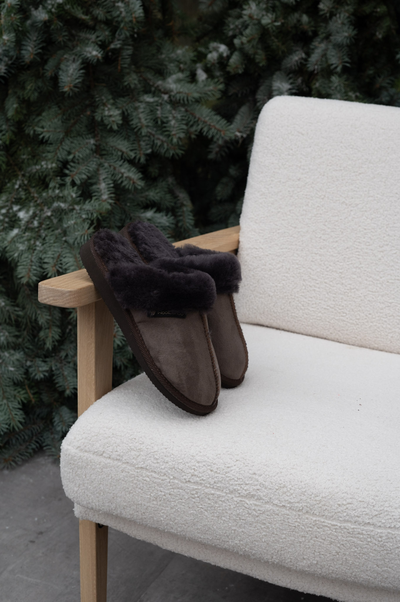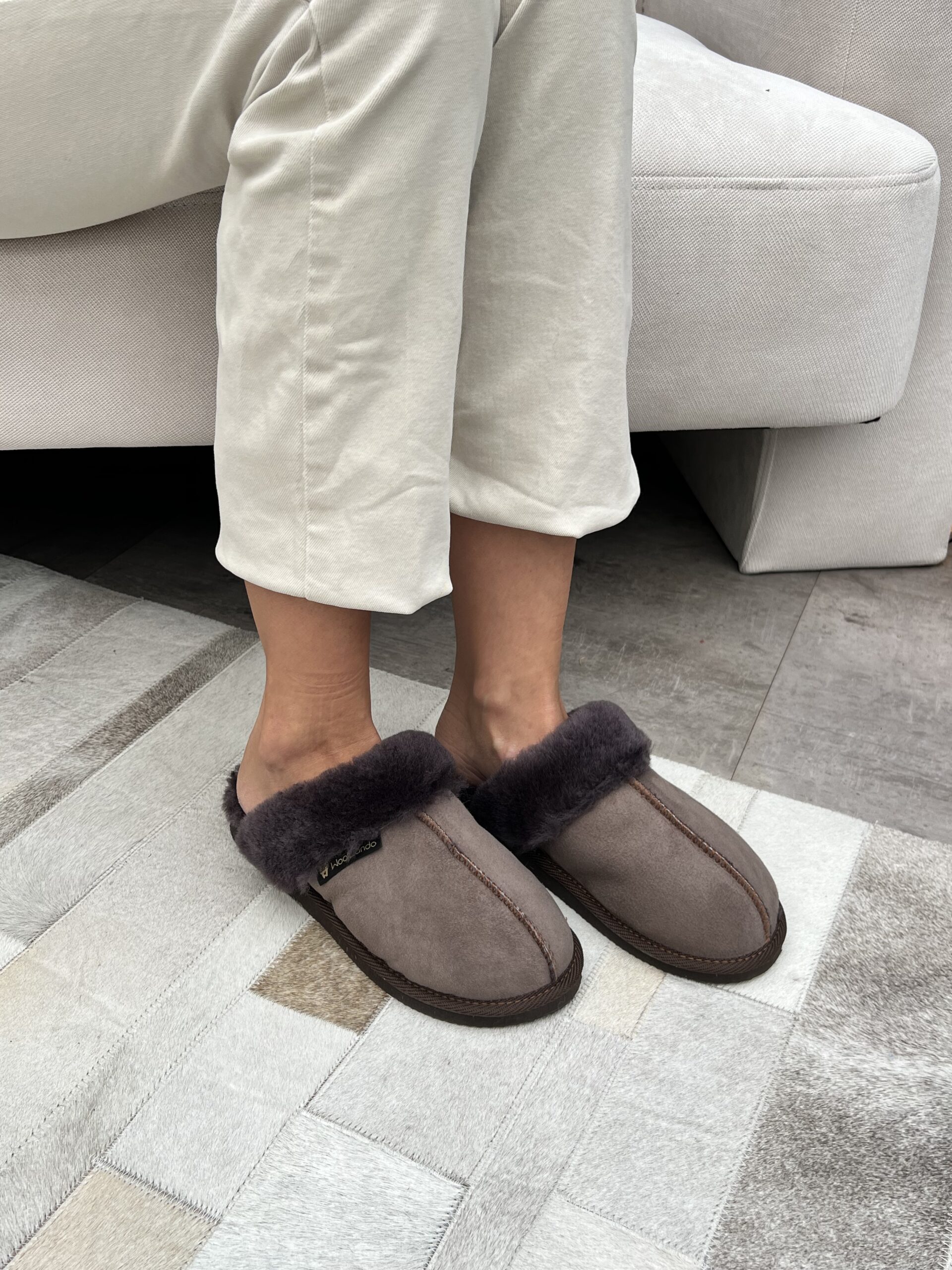 Namuose jauskitės patogiai! Dėka šių natūralaus kailio šlepečių jausitės patogiai visa diena.