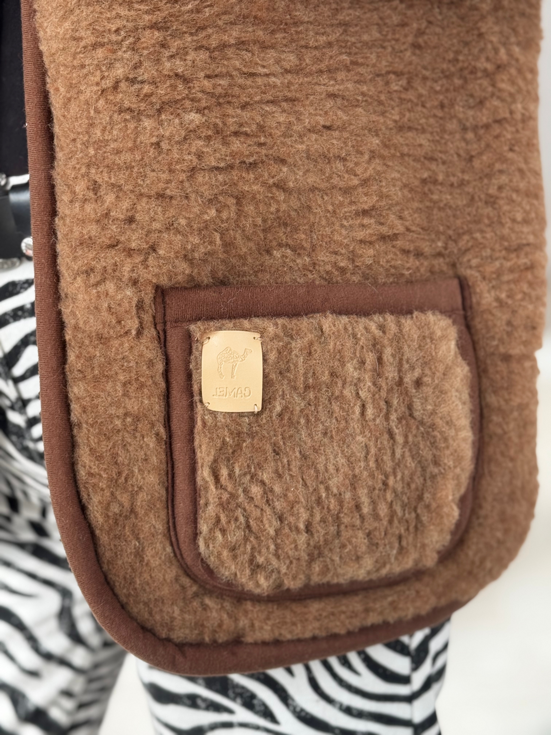 Natūralios vilnos gaminiai gali turėti silpną natūralaus pluošto kvapą. Jei jis atrodo per intensyvus, rekomenduojame liemenę vėdinti sausoje aplinkoje.