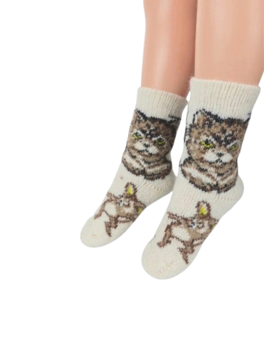 Vaikiškos merino vilnos kojinės KATINĖLIS