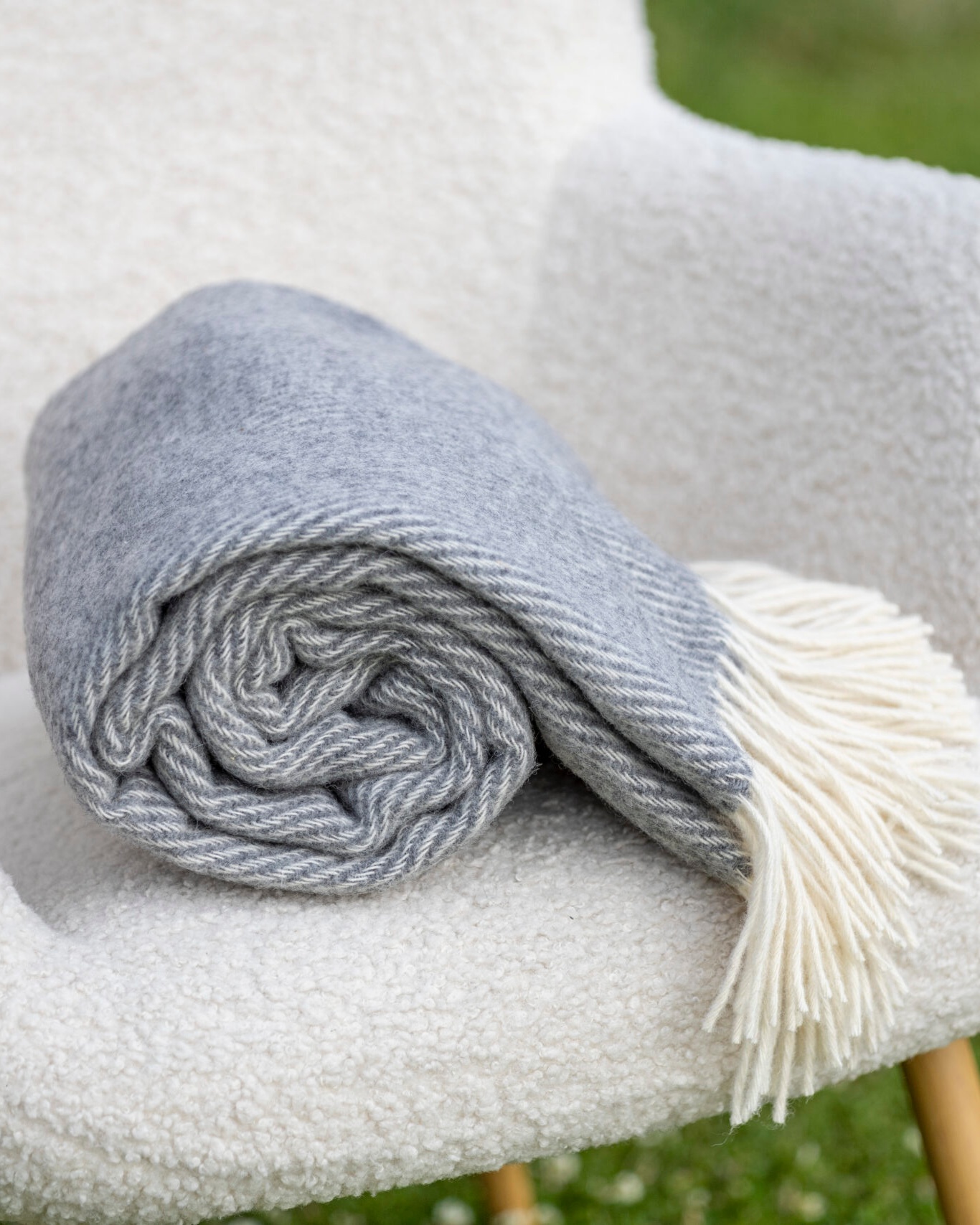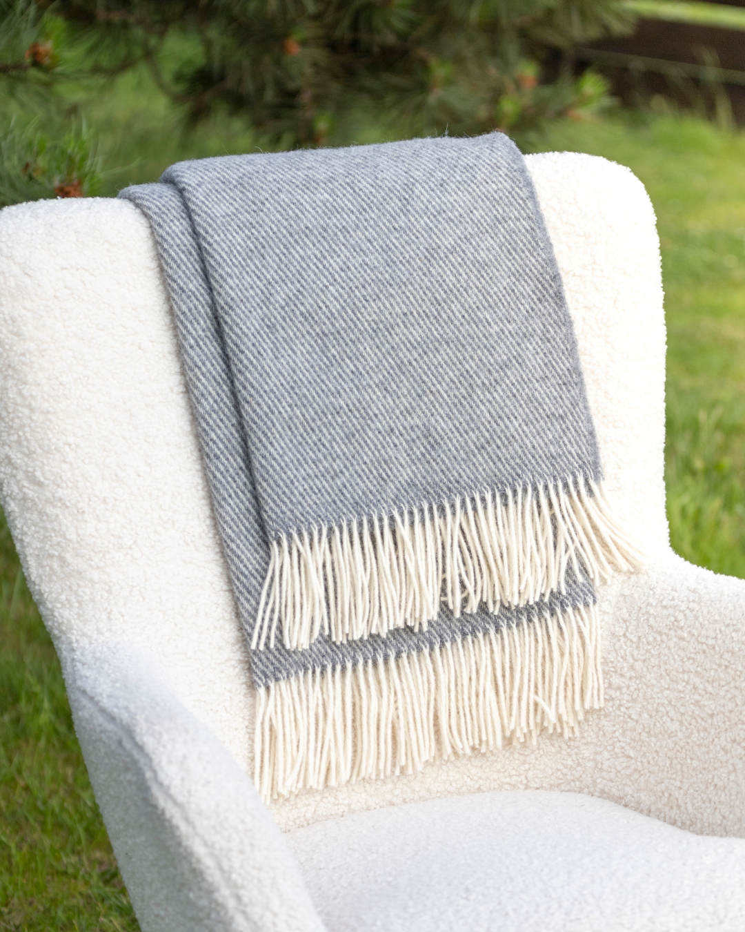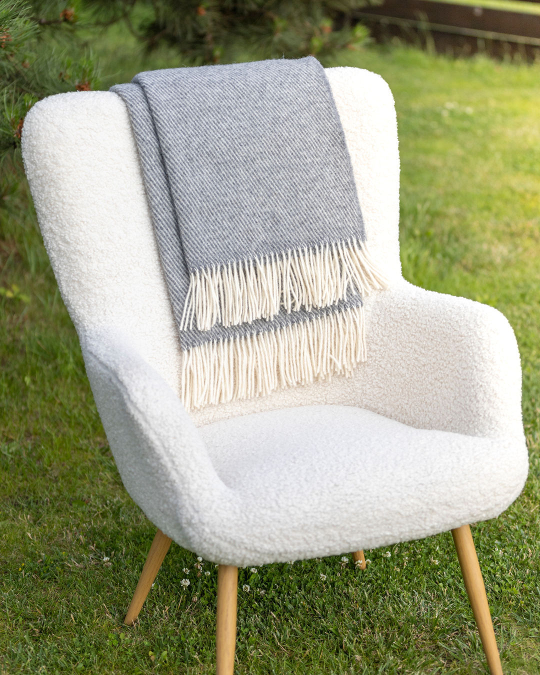 Aukščiausios rūšies Zelandijos avių vilna. Pledo kraštus puošia dailūs, minimalistiniai kutai, suteikiantys subtilaus žavesio klasikiniam pledui. Rinkitės vienspalvį arba languotą. Langelių spalvos neišryškėja, nekontrastuoja su fonu. Spalvų paletė rami, harmoninga – vyrauja pastelinės, klasikinės, universalios spalvos, todėl pledas tiks ir vyrui, ir moteriai, taip pat vaikams. Jis galės įsikurti Jūsų miegamajame ar svetainės zonoje – nepriklausomai nuo vietos, gaminys papildys interjerą stilingu ir jaukiu akcentu.