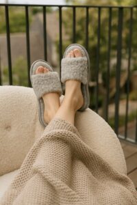 Namuose jauskitės patogiai! Dėka šių natūralaus kailio aulinukų jausitės patogiai visa diena.